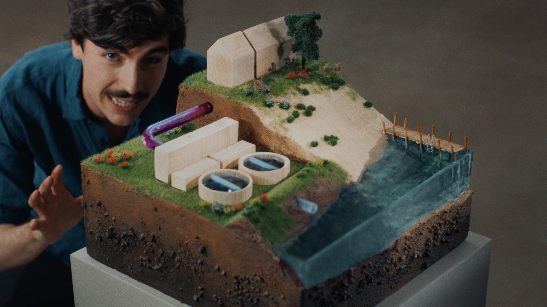 A unique mixed-media campaign blending handcrafted dioramas with digital fluid simulations to illustrate water management.