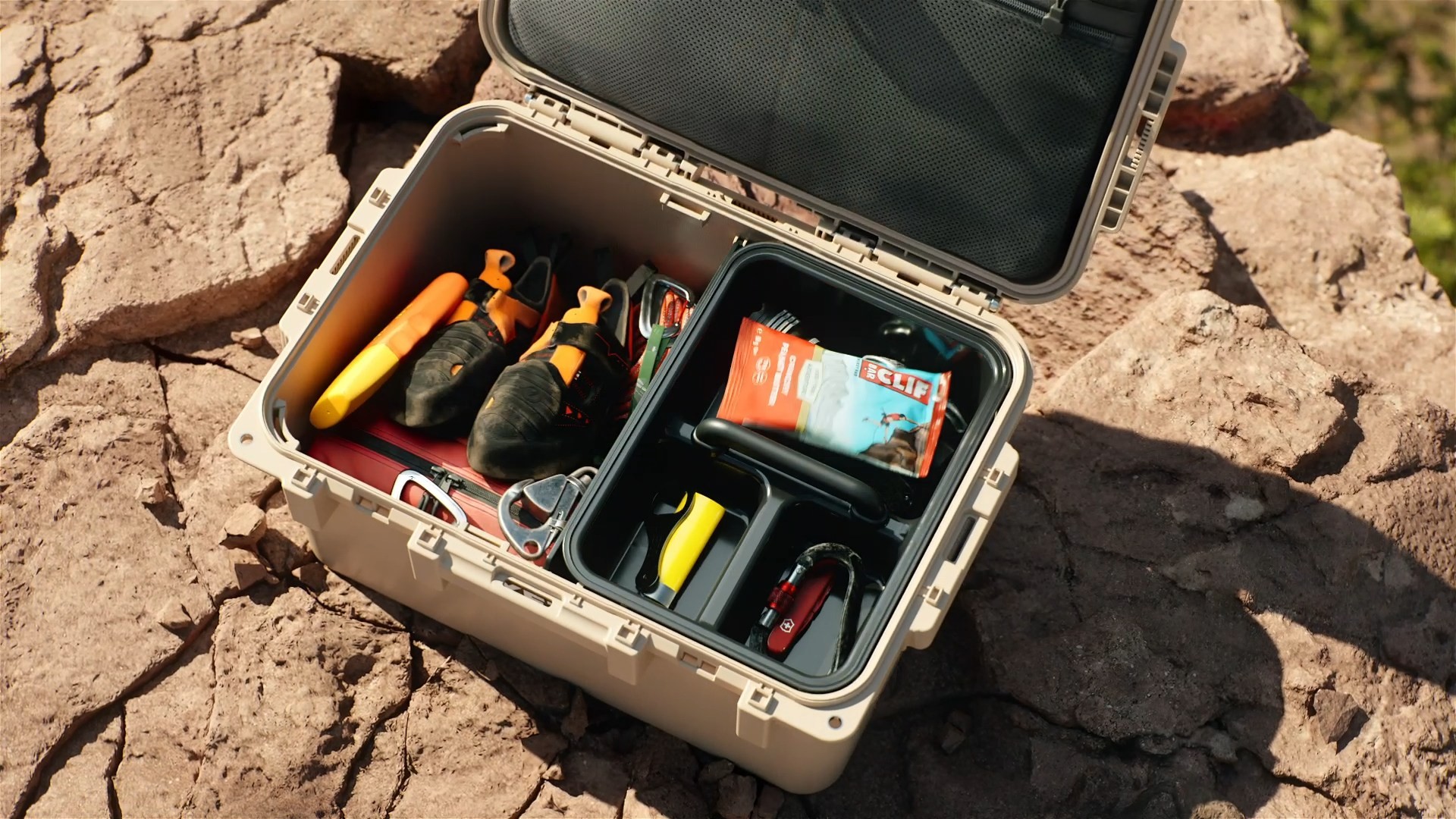 What goes here goes anywhere. The YETI GoBox is designed to be nearly indestructible, keeping gear protected and organized regardless of the pursuit. This specific duality—the ability to take a brutal beating on the outside while keeping everything beautifully intact on the inside—became the driving force of the narrative. I worked with Proper Studio to build a fully CG spot that visualizes this resilience, proving that true organization can survive anything.